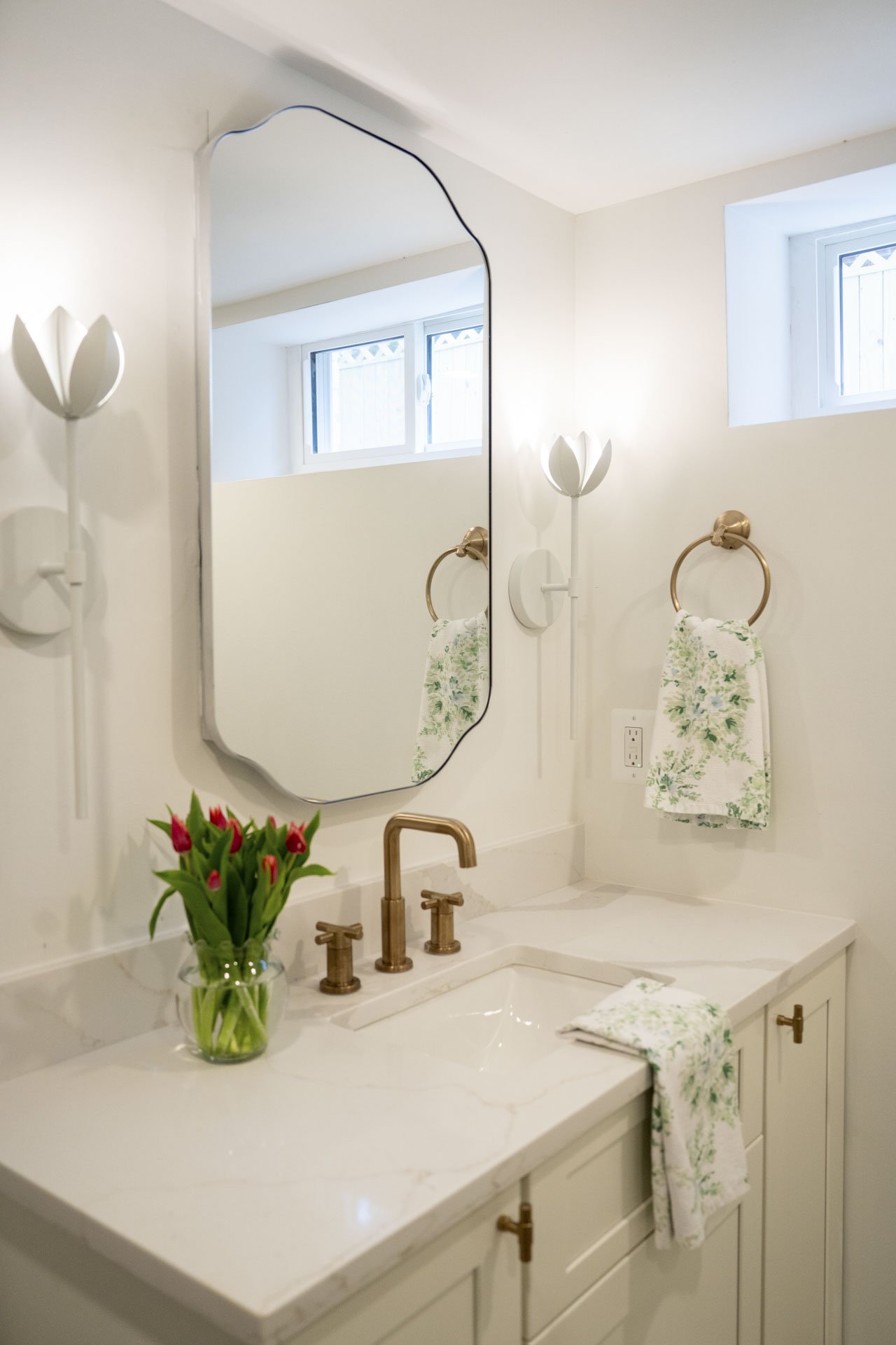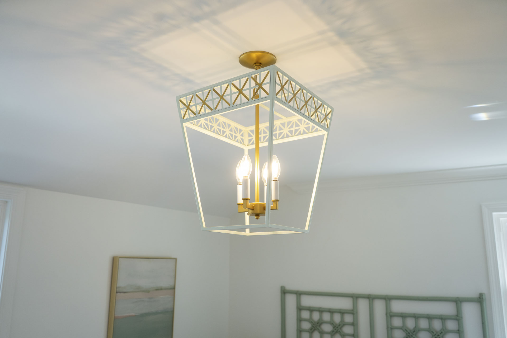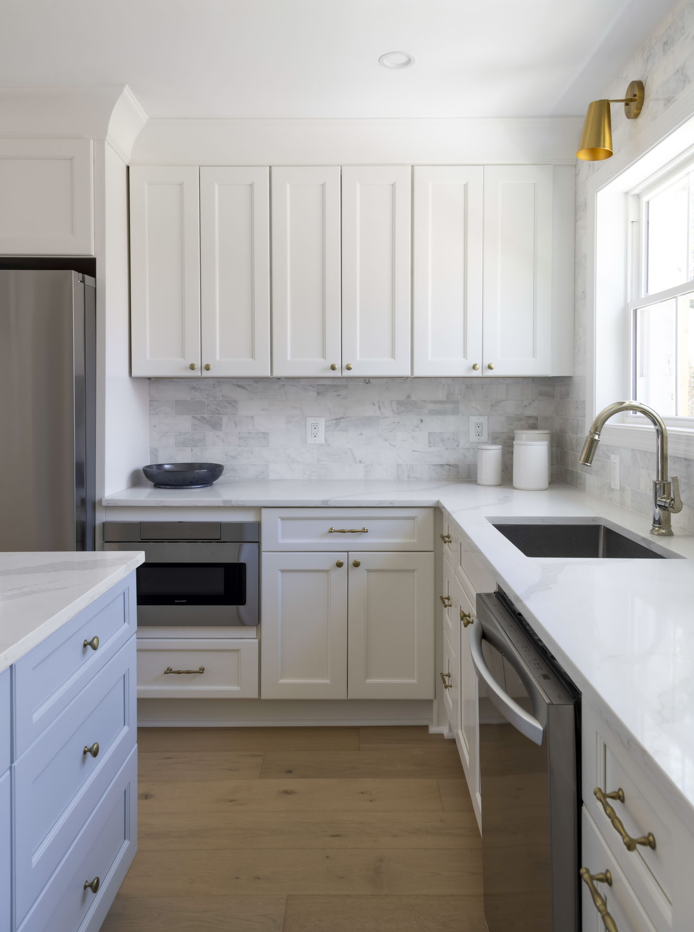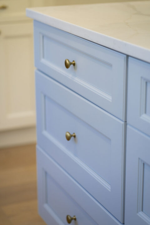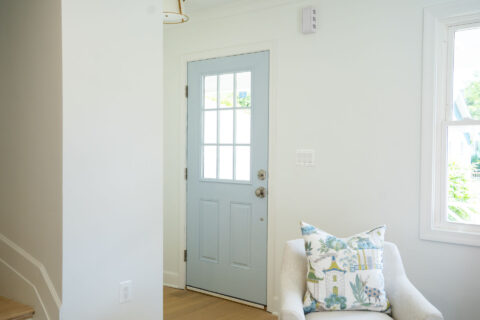 This Del Ray townhome renovation blends classic charm with custom details rarely found in the neighborhood. A Charleston-inspired palette of soft blues carries through the home, complemented by a custom painted kitchen island and carefully curated lighting design. The result is a warm, welcoming space with character and craftsmanship at every turn.